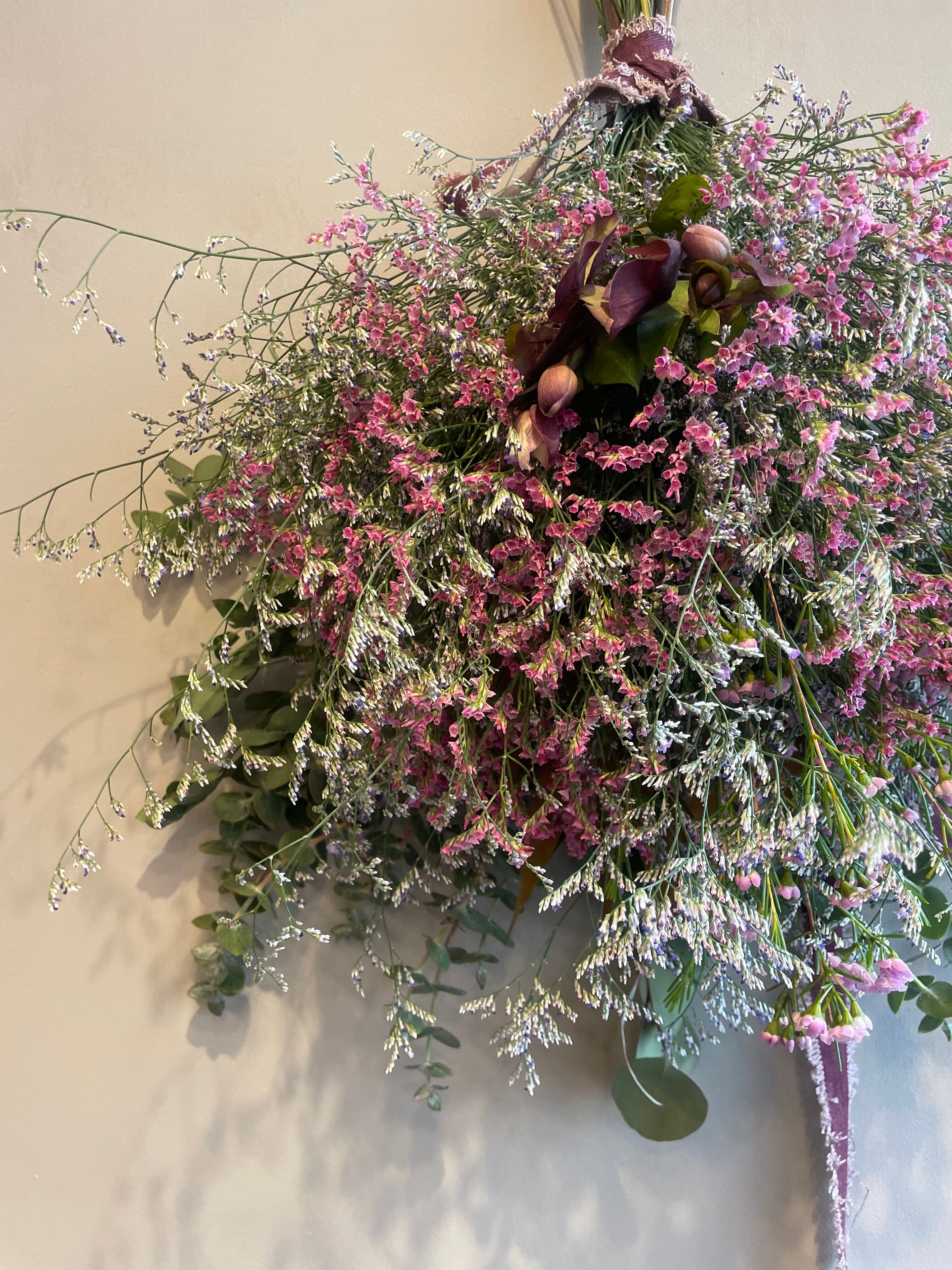 クリスマスローズとスターチスの季節のスワッグ